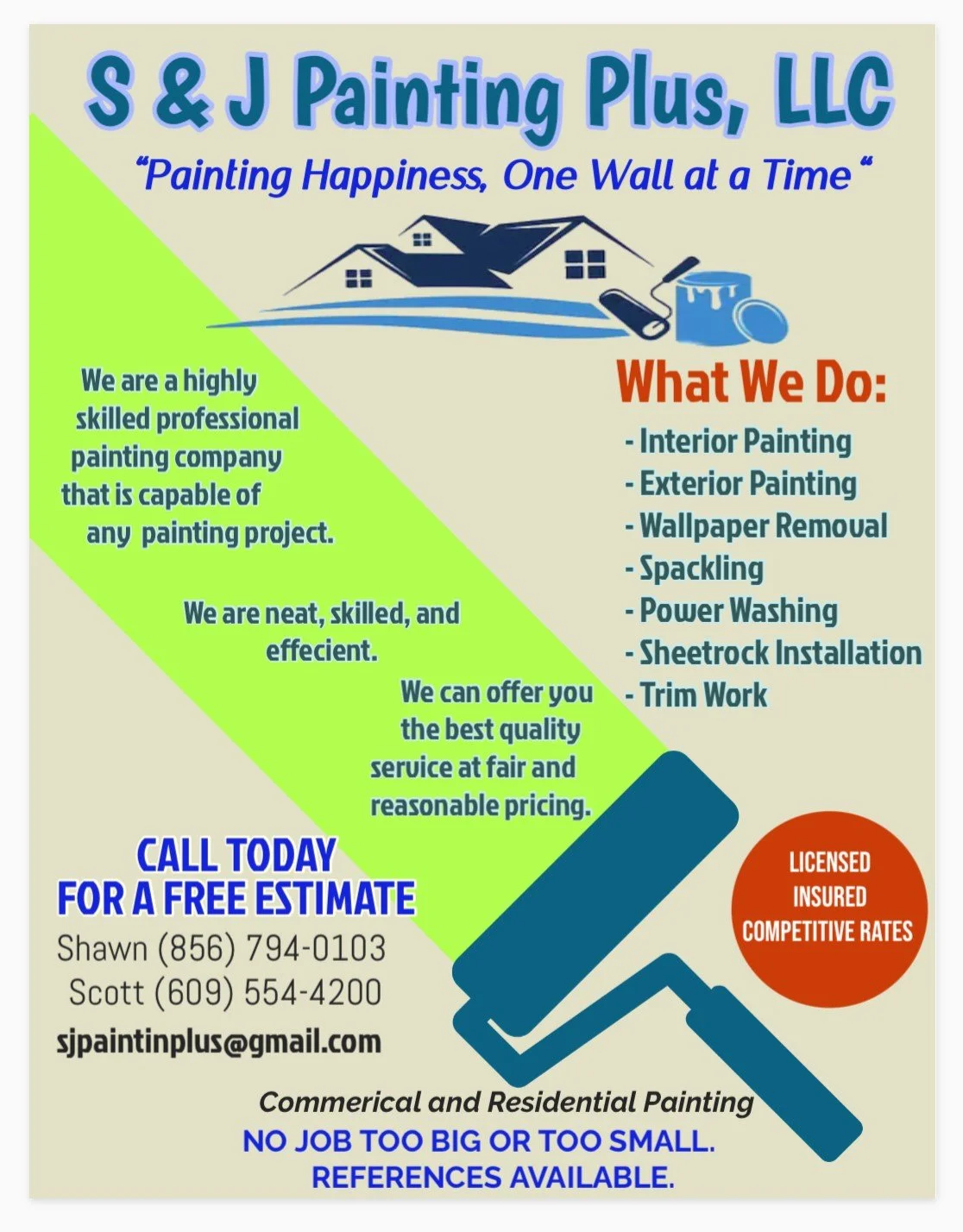 S&J Painting Plus, LLC Let’s stay connected Reach out about a project, collaboration or just to say hello! Email * Message * Thank you! Get your FREE quote TODAY!